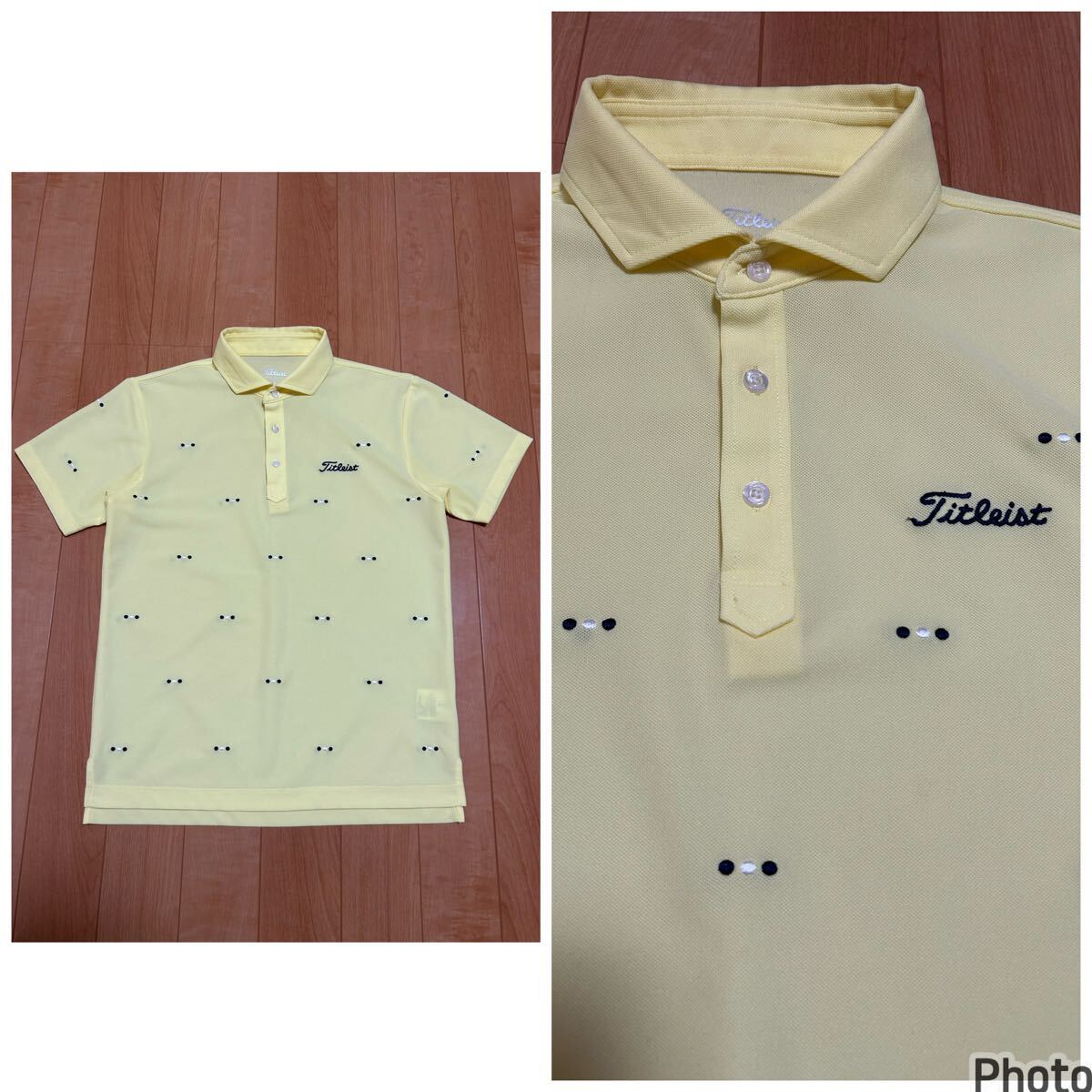 - 着用少な目良品☆Titleist/タイトリスト メンズサイズL 快適速乾ドライ鹿の子状.半袖ポロシャツ ロゴ刺繍入&全面ユーロ調ドット風刺繍総柄