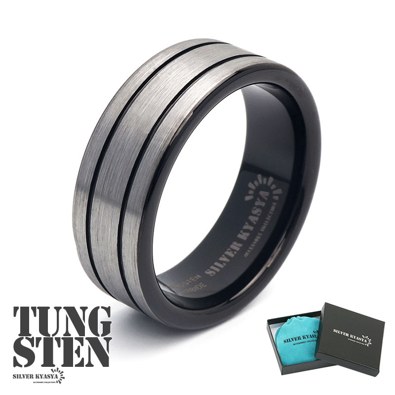 - (26号) タングステン ライン リング メンズ 指輪 シルバー マット つや消し バイカラー 金属アレルギー対応 専用BOX