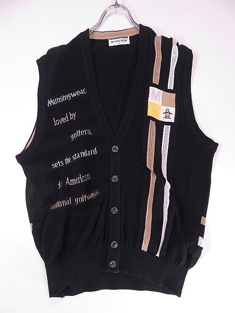 - 【送料無料】マンシングウェア Munsingwear ニットベスト 一部メッシュ 黒 M