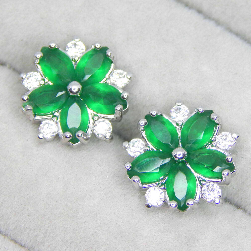 > 新品★送料無料 5連エメラルド 桜ピアス レディース シルバー925 CZダイヤモンド プラチナ仕上 アクセサリー ジルコニア イヤリング化可