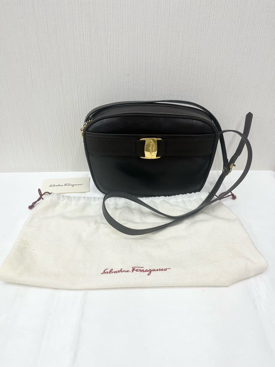 > Salvatore Ferragamo フェラガモ ショルダーバッグ ヴァラ ダークブラウン レザー 〇相応に美品です...