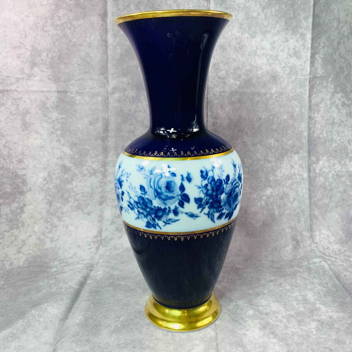 - ドイツ KPM コバルトブルー 花瓶 花入 金彩 フラワーベース 花器 置物 インテリア 壺 ババリア 西洋美術 染付 ブルーローズ 薔薇 バラ
