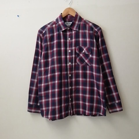 - ★【古着】LOGOS(ロゴス) チェックシャツ(長袖シャツ) Mサイズ チェック柄(赤系)