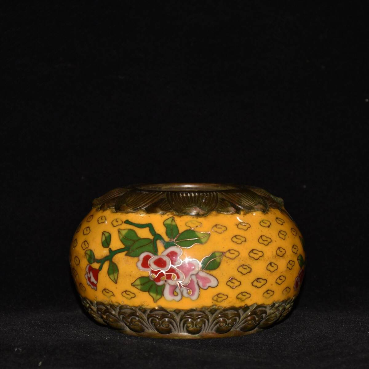 - 【超珍館蔵】銅製 景泰藍 琺瑯彩 花卉紋 雙蓮花熏香炉 置物 賞物 古賞物 古董品 古美術品 時代物 旧家蔵出 稀少珍蔵品
