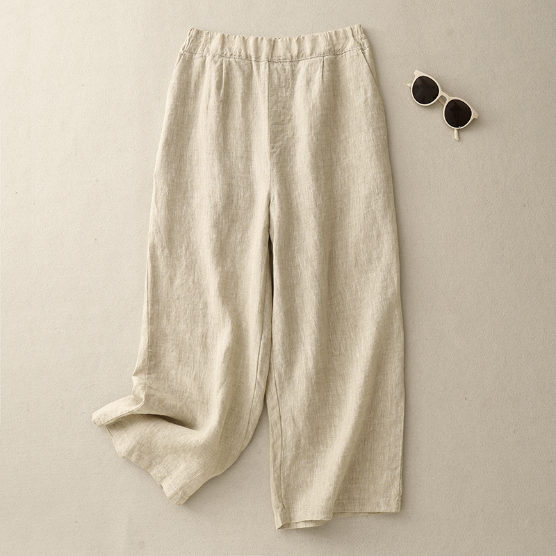 - 新入荷*カジュアル 綿麻 ガウチョパンツ 着やせ 通勤 普段着 ボトムス ワイドパンツ ウエストゴム ゆったり 大きいサイズ パンツ*麻色