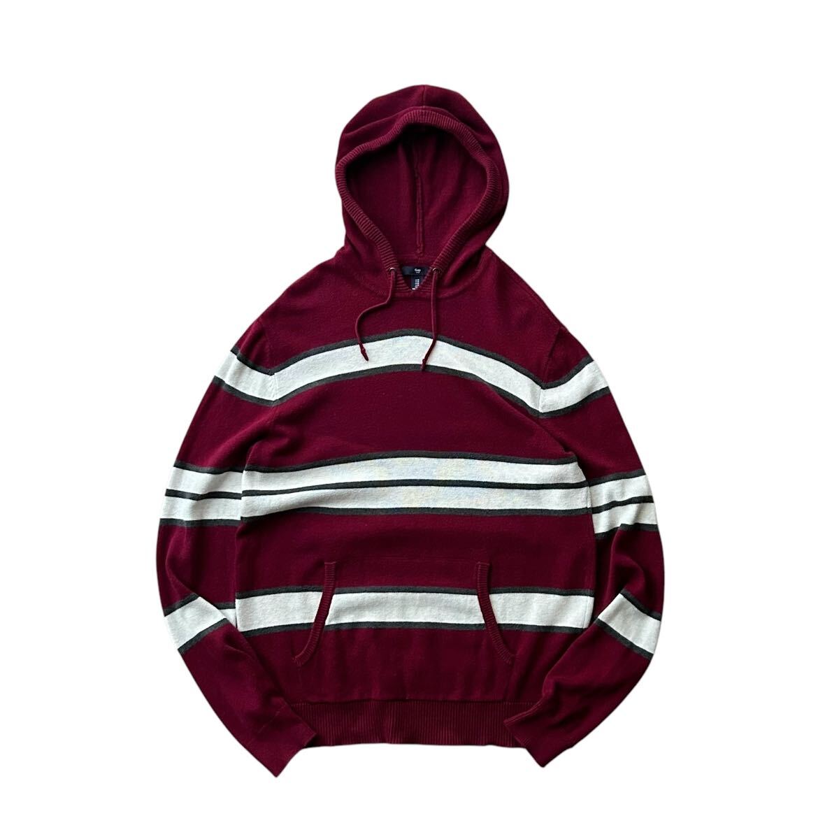 > GAP ギャップ ニットフーディー Mサイズ えんじ バーガンディ コットンニット パーカー ボーダー プルオーバー ホワイト セーター