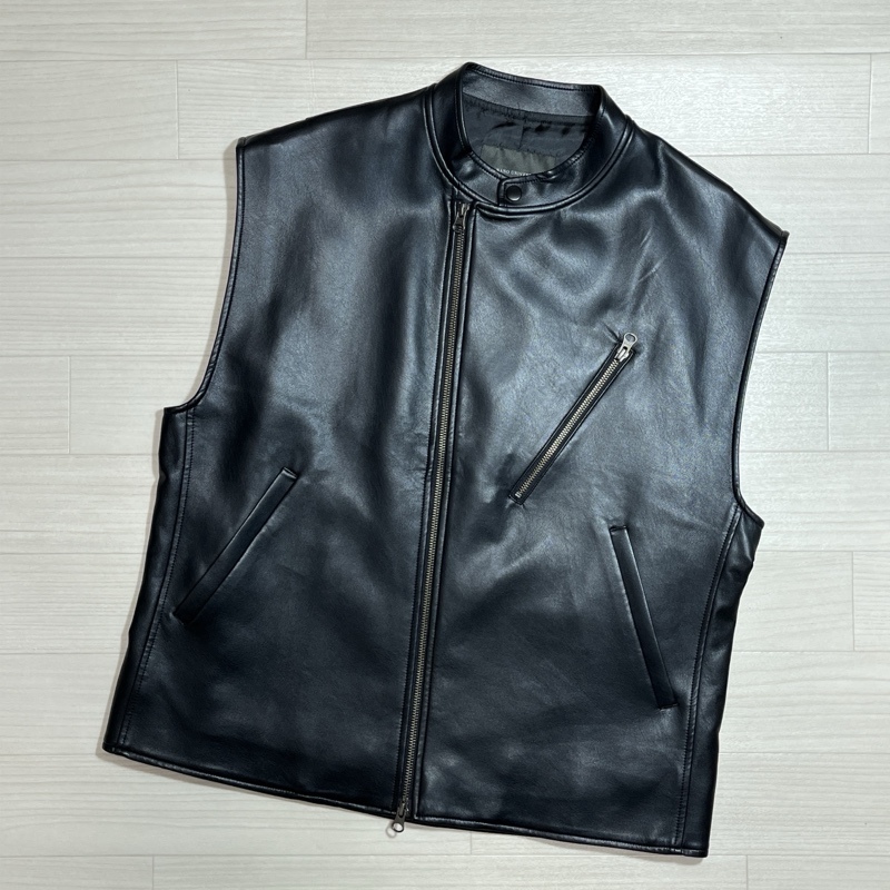- nano universe/ナノユニバース/VEGAN LEATHER FULL ZIP VEST/ヴィーガンレザー フルジップベスト/ブラック/スリーブレスライダース