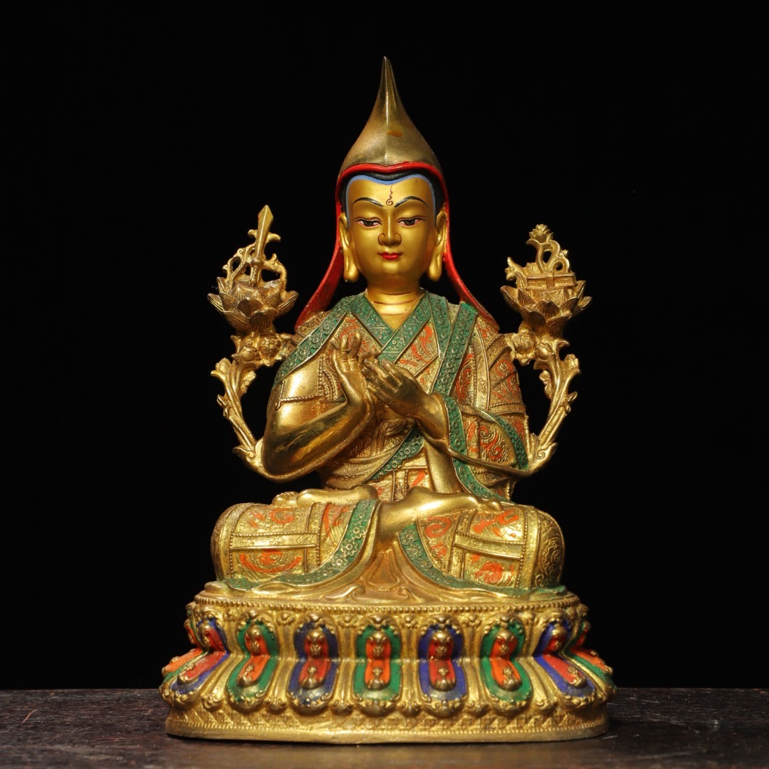 - 蔵友旧蔵出 銅製 描金 彩繪 宗喀巴像 貴重物品 置物 古賞物 密宗密教 供養品 仏教美術品