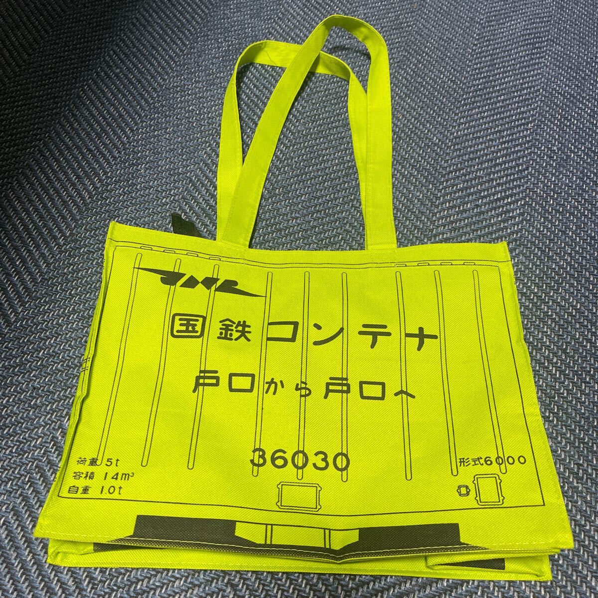 - ポポンデッタ 国鉄コンテナ トートバッグ 黄緑色 チャック付き エコバッグ 戸口から戸口へ JR