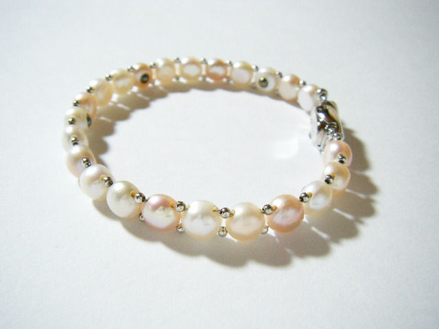 > ★留具 SILVER TOP GSV BOTTOM PAT.P マベパール ブレスレット 磁器? ピンク系 7mm 内側寸法 16cm【IF18】