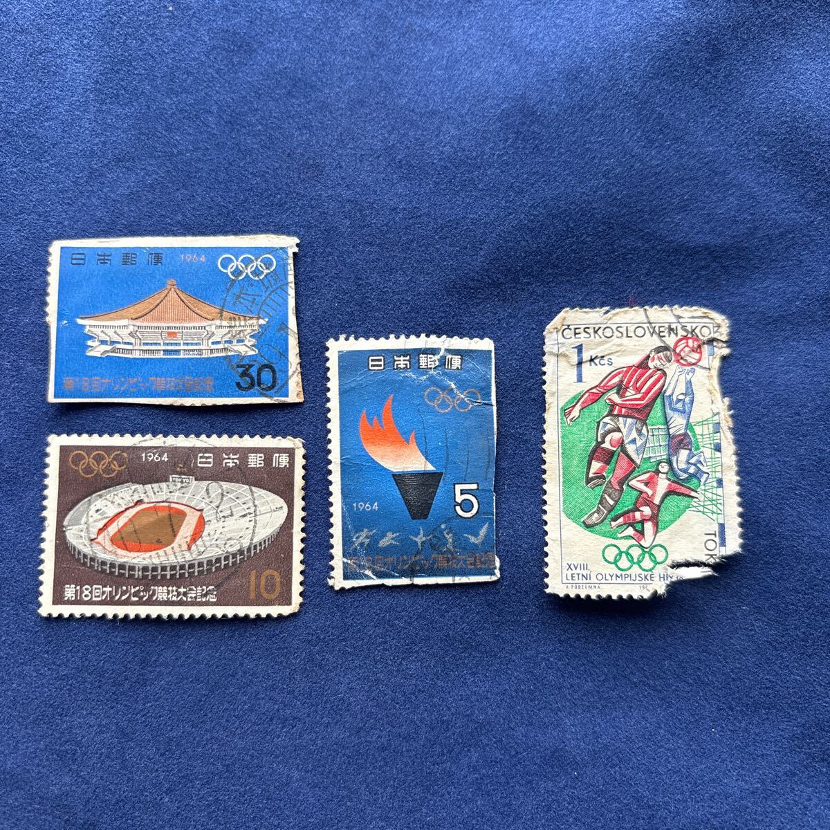 - 記念切手 使用済【第18回オリンピック競技大会記念】【チェコスロバキア バレー】バラ4枚 東京五輪 スポーツ 日本 海外 昭和 送料無料