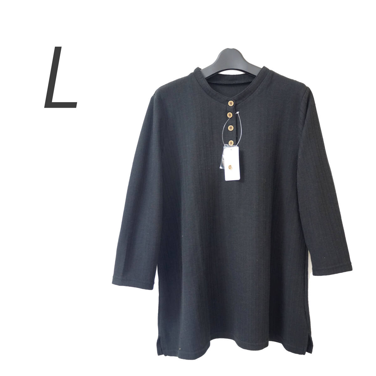 - ●新品/ヘンリーネック/トップス/リブ/黒系/L/無地/レディース●x0003