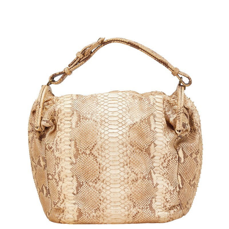> ボッテガヴェネタ ワンショルダーバッグ ハンドバッグ ベージュ ブラウン パイソン レザー レディース BOTTEGAVENETA 【中古】