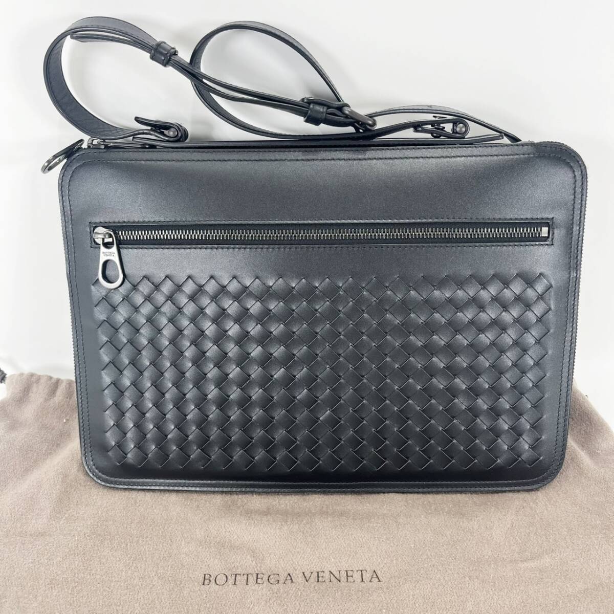 - 美品 bottegaveneta ボッテガヴェネタ レザーブリーフケース ショルダーバッグ ビジネス 536287 V4651 メンズ ブラック 袋あり