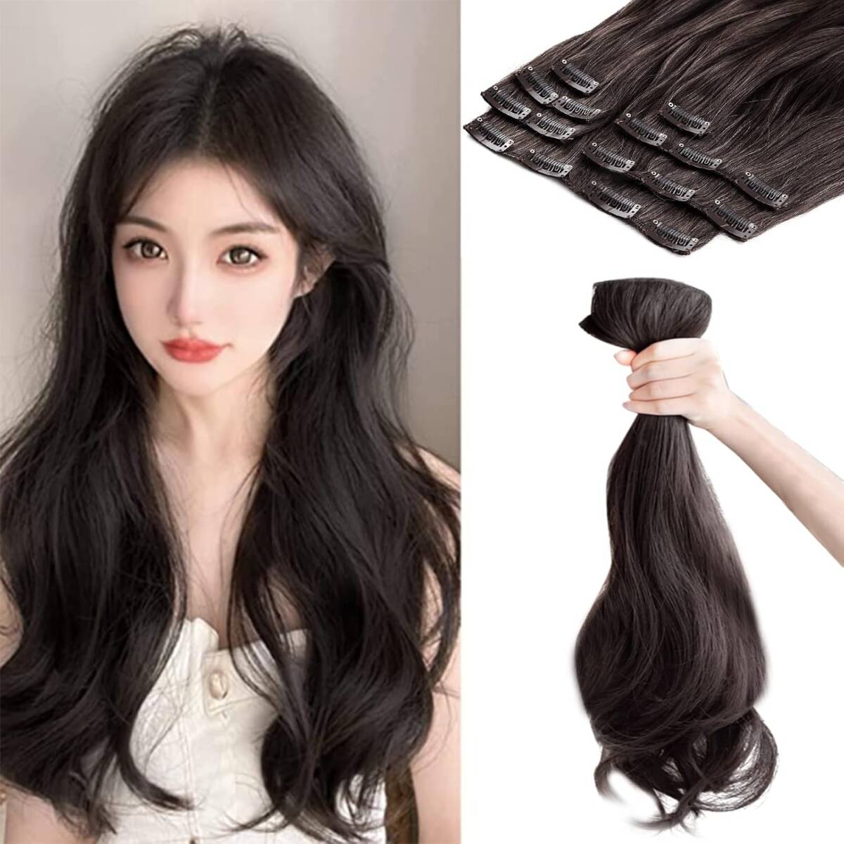 - (7枚いり) Vlasy エクステ 襟足 ウィッグ エクステ ロング カール クリップ付き ワンタッチ エクステ サラサラ 自然 耐熱 つけ毛 ハーフ
