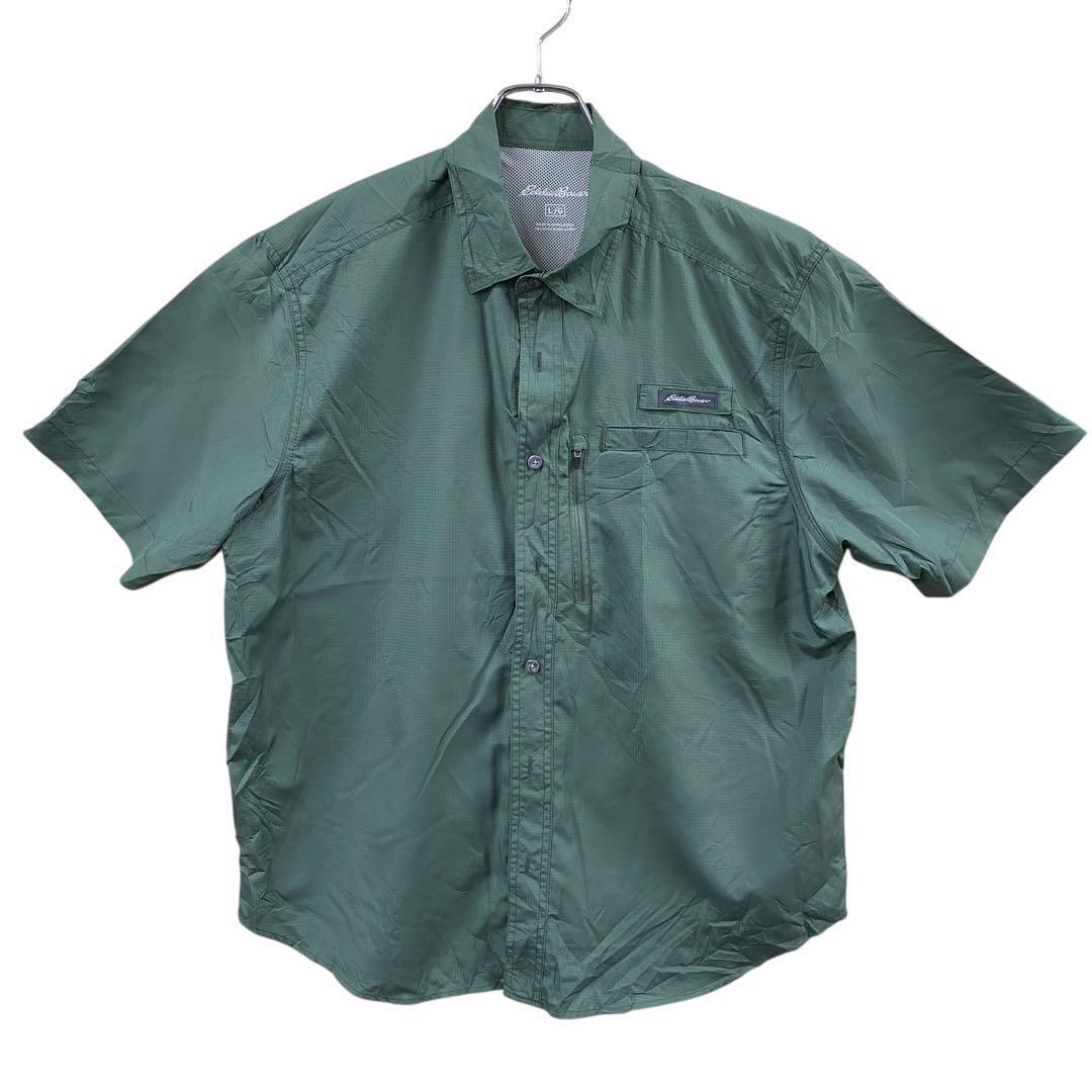 - エディーバウアー メンズ半袖テックシャツ 枯れ草/緑系 L タグ付き【3895】