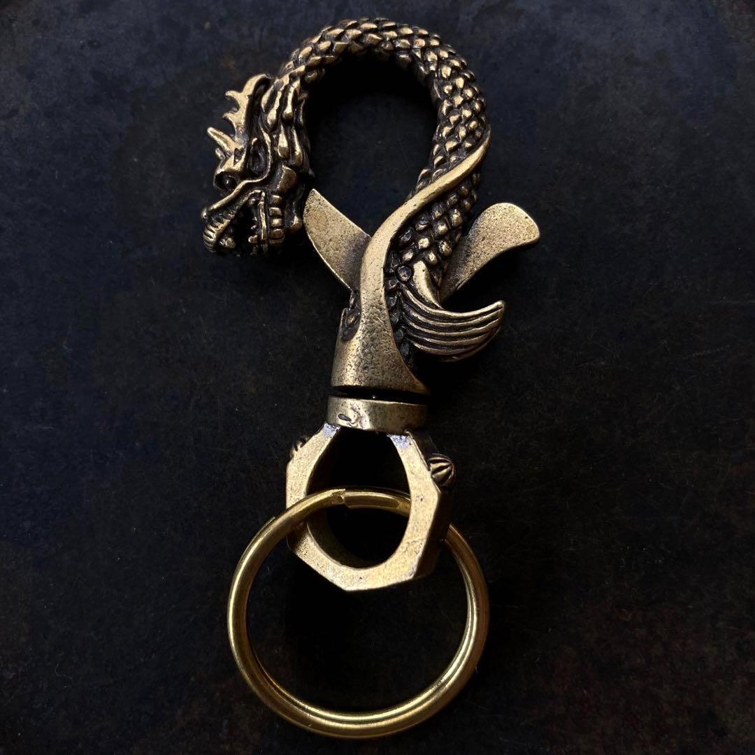 - 200 真鍮 キーホルダー キーリング カラビナ フック レバーナスカン 龍 ビンテージ レトロ アンティーク アクセサリー パーツ ハンドメイド