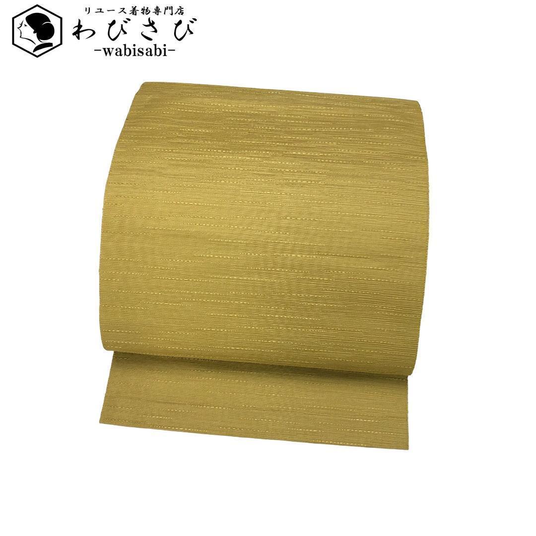 - 名古屋帯 紬 無地 黄櫨色 O-5105 着物 きもの kimono 和服 和装 中古 リサイクル着物 【送料無料】