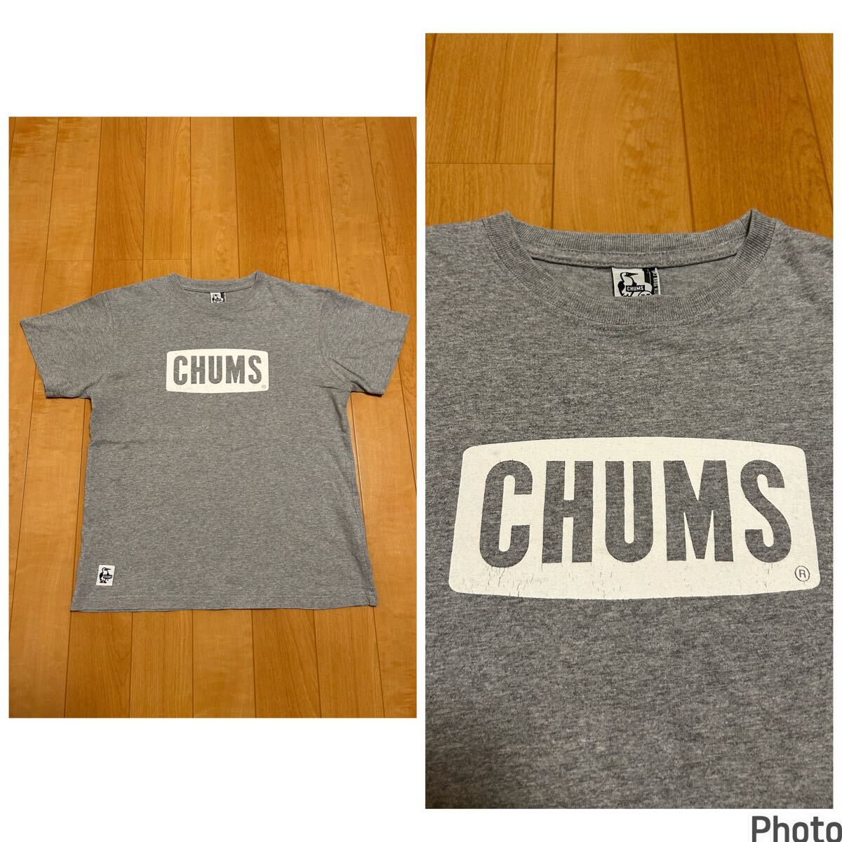 - 良品☆CHUMS/チャムス メンズサイズM 半袖ヘヴィコットンTシャツ 正面BIGロゴプリント&キャラクターマークタブ付 霜降りグレー色 /パンツ