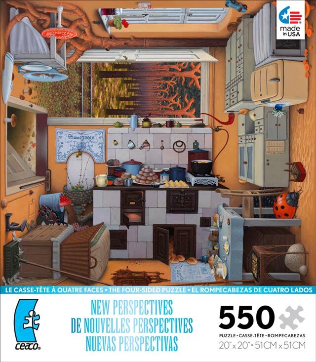- 2381-7 ジグソーパズル 550ピース 新しい視点のキッチン 鍋や食器、焼きたてのパン 冷蔵庫 KITCHEN Jacek Yerka