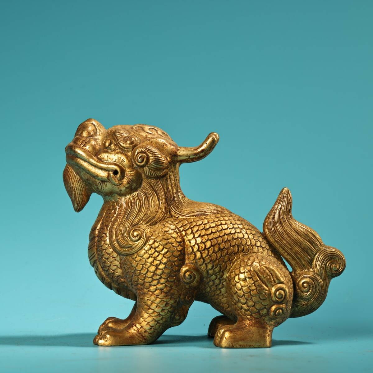- 蔵友旧蔵出 銅製 塗金 麒麟 貴重品 置物 古賞物 中国古玩 中国古美術品