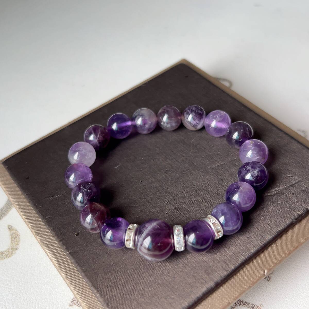 > ◇ウルグアイ産◇紫水晶◇ピラミッド入り◇アメジスト◇ブレスレット◇パワーストーン◇天然石◇巾着袋付き◇プレゼントにも 037B5242