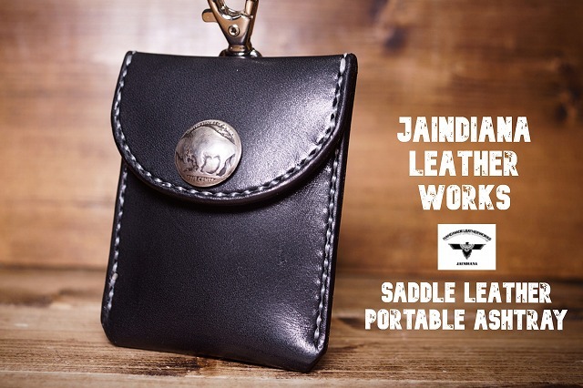 - サドルレザー携帯灰皿 ブラック 手縫い・ハンドメイド