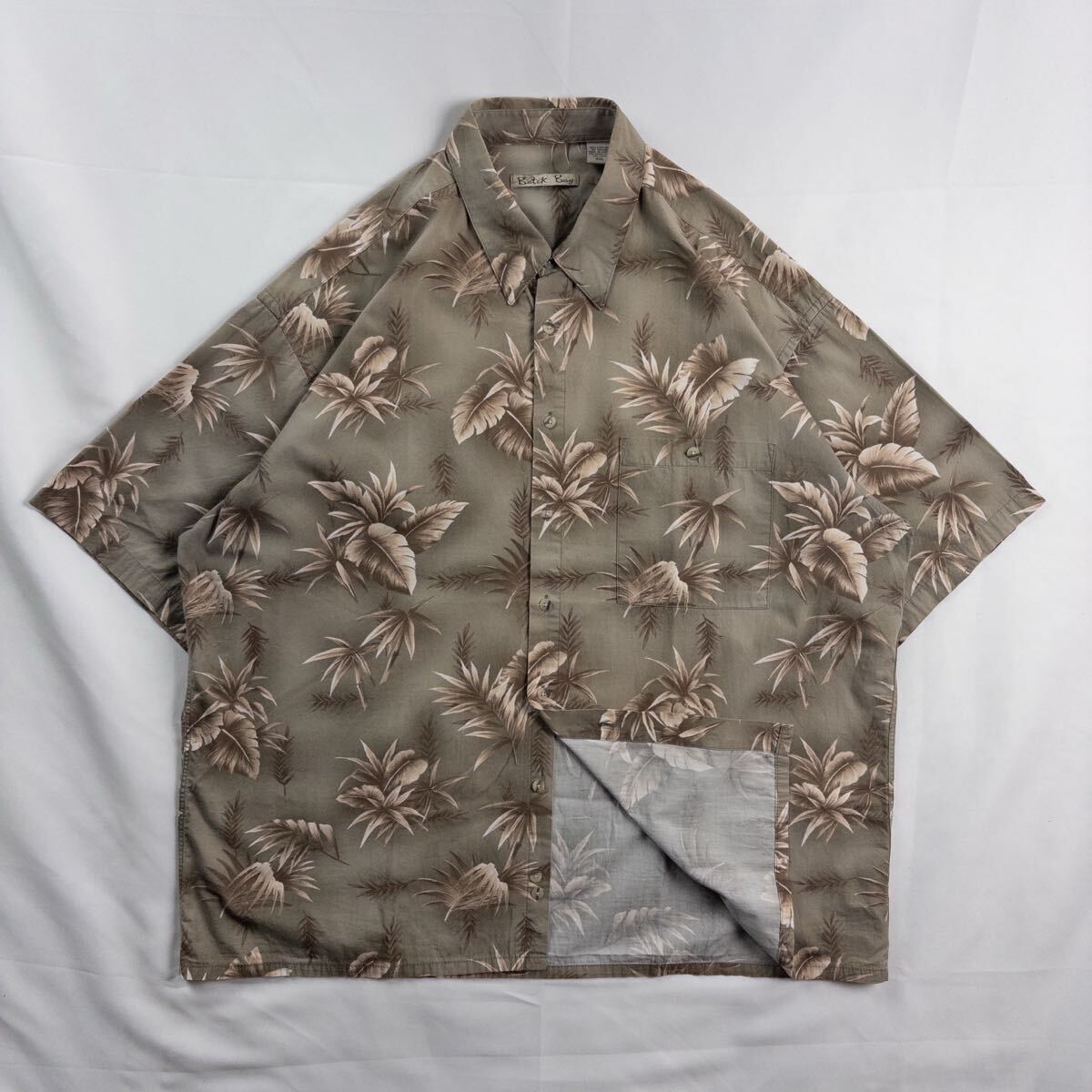 - US Vintage 90s Batik Bay コットン100% くすみカラー ボタニカル リーフ エスニック 民族 ハワイアン アロハ 総柄 デザインシャツ