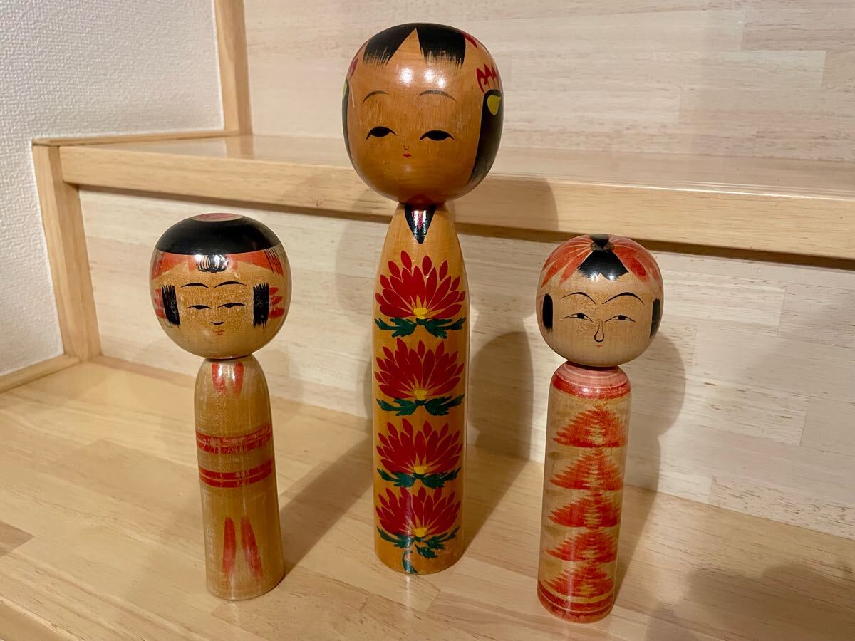 - 木製こけし人形セット アンティーク 日本製 ビンテージ 作家作品 昭和レトロ 伝統こけし 置物 民芸品 郷土玩具 伝統工芸品