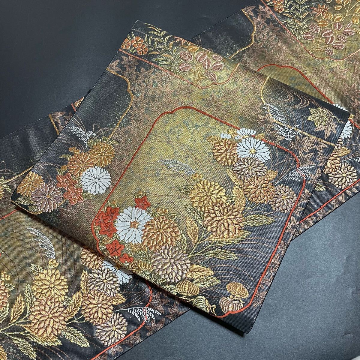 > #H084 美品 袋帯 六通 西陣織 綴織 金糸 菊 正絹 フォーマル 和装 和服【wellriver】