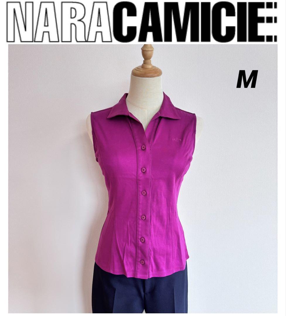 - NARACAMICIE ナラカミーチェ ノースリーブ 襟付き コットン シャツ 刺繍ロゴ ピンク系 M