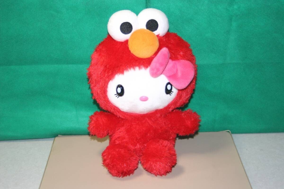 - サンリオ ハローキティ × セサミストリート エルモの着ぐるみ 2011年 USJ限定 ぬいぐるみ 約24cm ピンクのリボン ユニバ