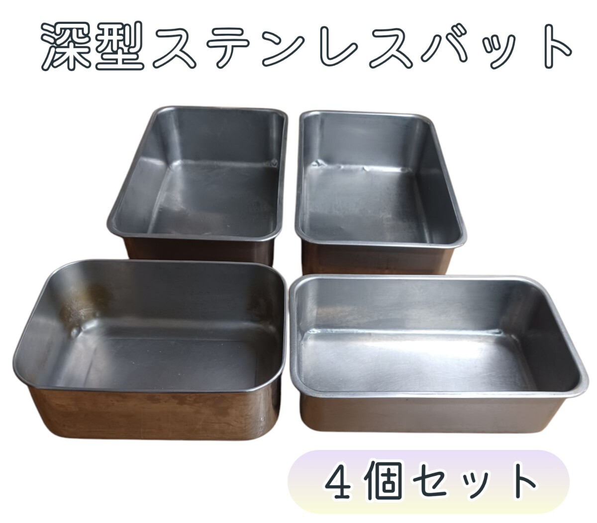 - 岩)深型バット4個セット ステンレス 薬味入れ バット 調味料入れ 業務用 調理器具 厨房 仕込み 飲食店 調理 キッチン 250526(N-1-3