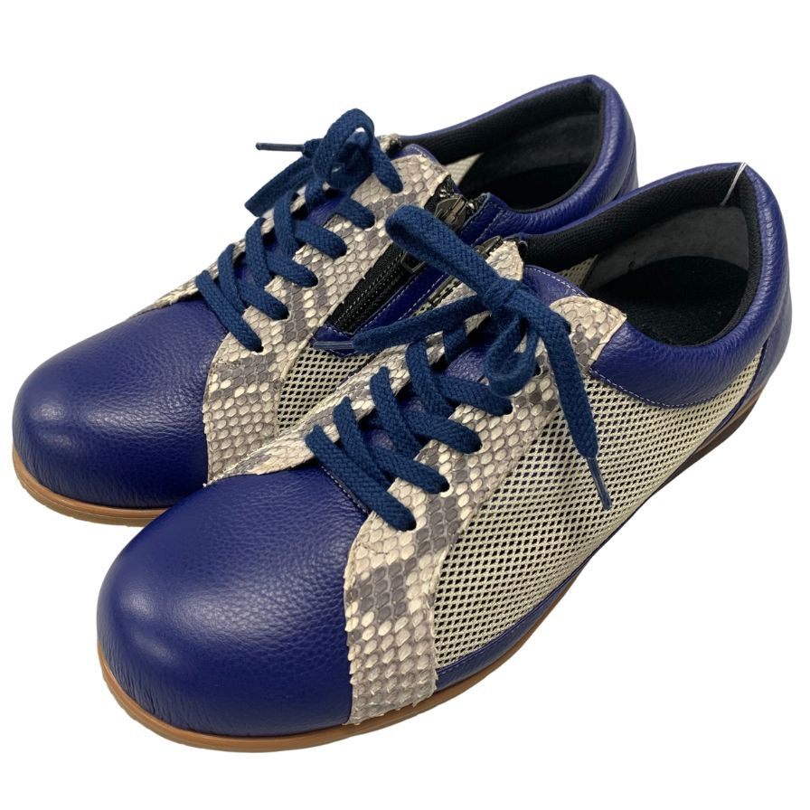 - 新宿屋 レザースニーカー レザー×パイソン 0255-545 23.5cm レディース ブルー shinjukuya 約23.5cm【7-19】