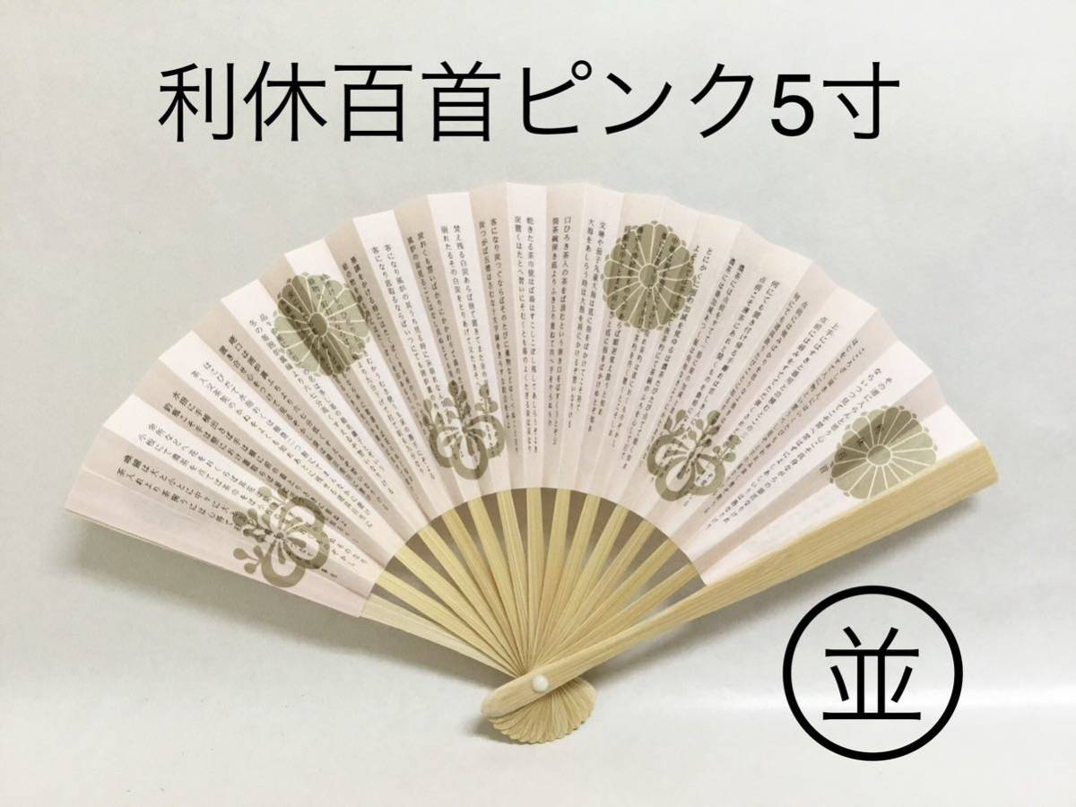 - 茶道具 扇子 利休百首 ピンク 白竹 5寸(並)新品