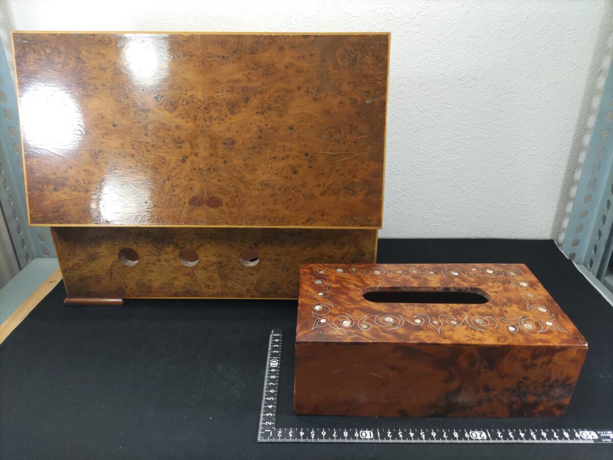 - ■送料無料!■まとめて■瘤材のティッシュケース■木箱■収納■保管箱■螺鈿細工■木製■無垢■天然木・唐木■木工芸■2点セット!