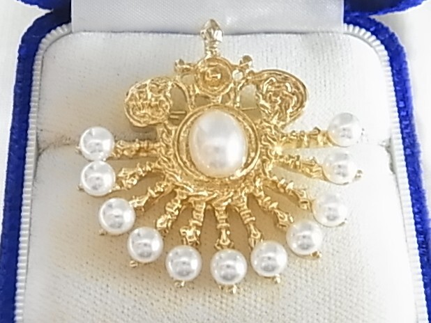 - ■未使用 fakeパールとゴールドトーンの2トーンが上品な印象 エレガントな印象感 軽量 素敵なブローチ