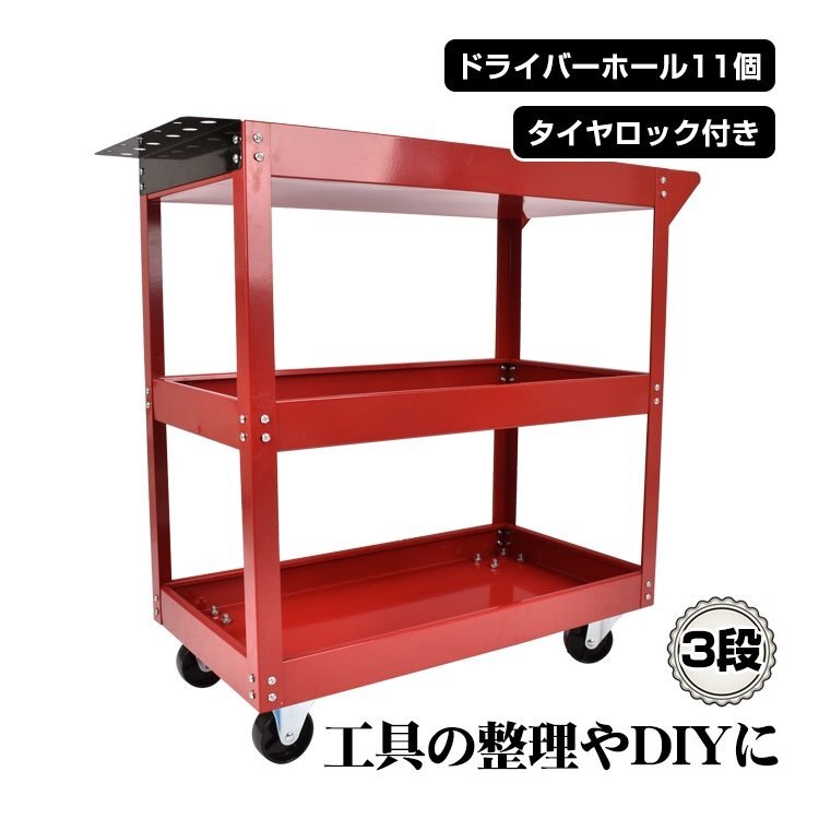 - ツールワゴン ツールカート 3段 工具台車 工具カート 工具収納 工具整理 ストッパー付きキャスター ドライバーホール付き ny607