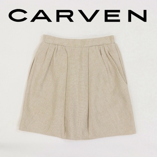- 美品◆CARVEN カルヴェン リネン100% ギャザー タック スカート ライトベージュ 38