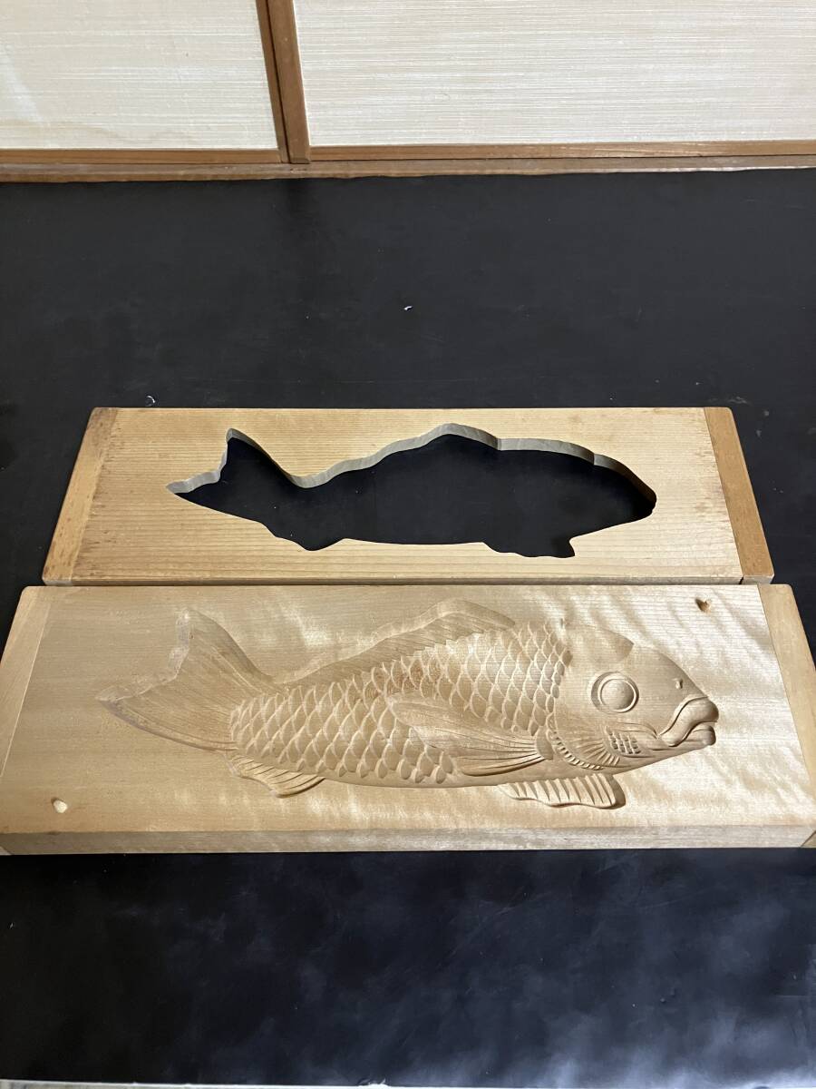 - 菓子木型 和菓子 鯛 鯉 木枠 43×13.5×5cm 美品 貴重 日本の宝