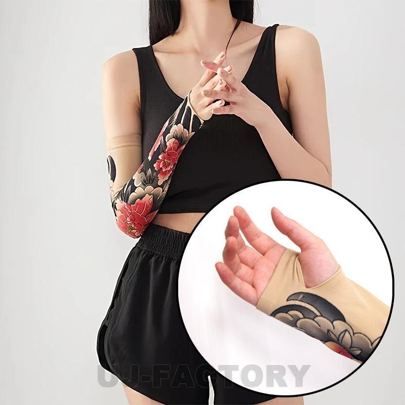 - 【タトゥーアームカバー/冷感素材使用!】★和柄 牡丹 1枚 和風 紫外線をしっかりブロック 厚手ニットタイプ 腕 指あき UV対策 フルカバー