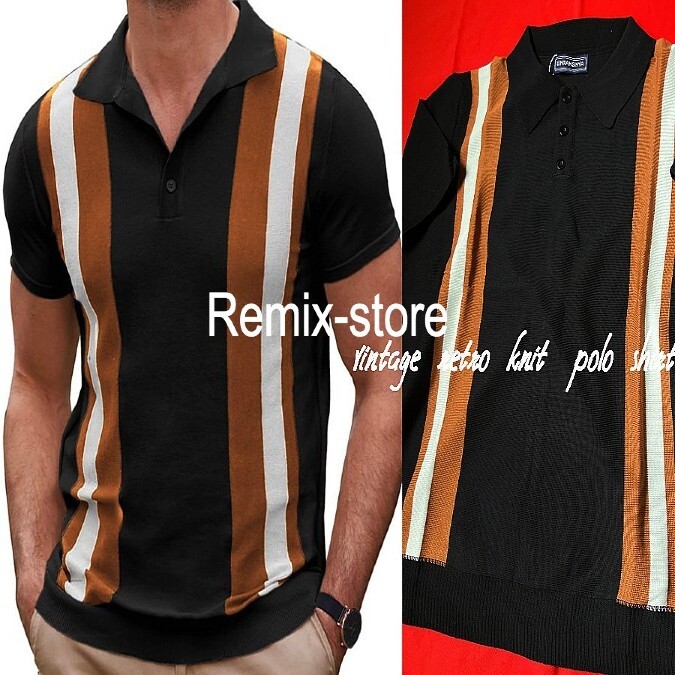 > ★SUMMER モダンクラシック 最旬 レトロ サマー スキッパー ポロシャツ 黒 サイM〜3XL イタリア ヴィンテージ メンズ 半袖 ★T768