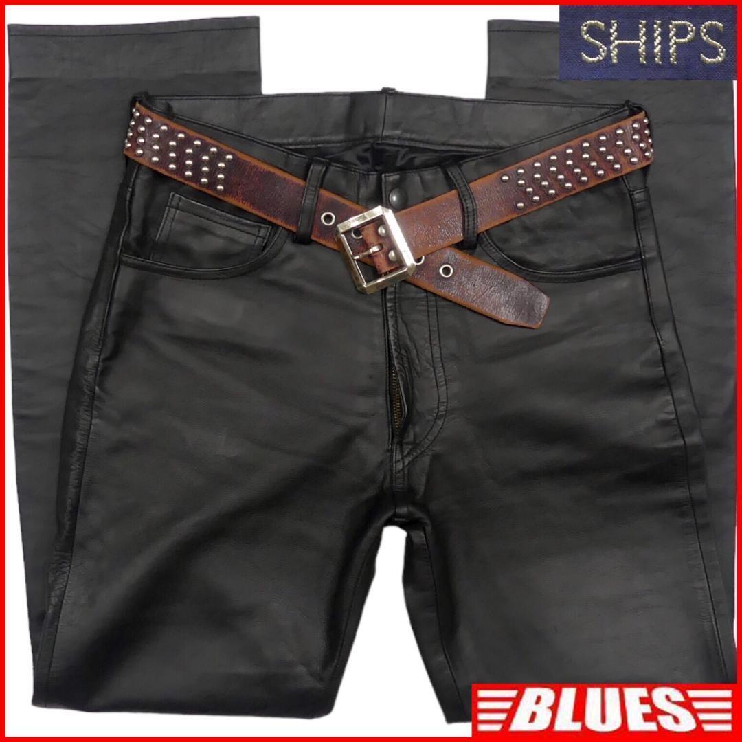 > 即決★SHIPS★W31 レザーパンツ シップス メンズ 黒 本革 牛革 ライダースパンツ 本皮 パンクロック ライディング ツーリング