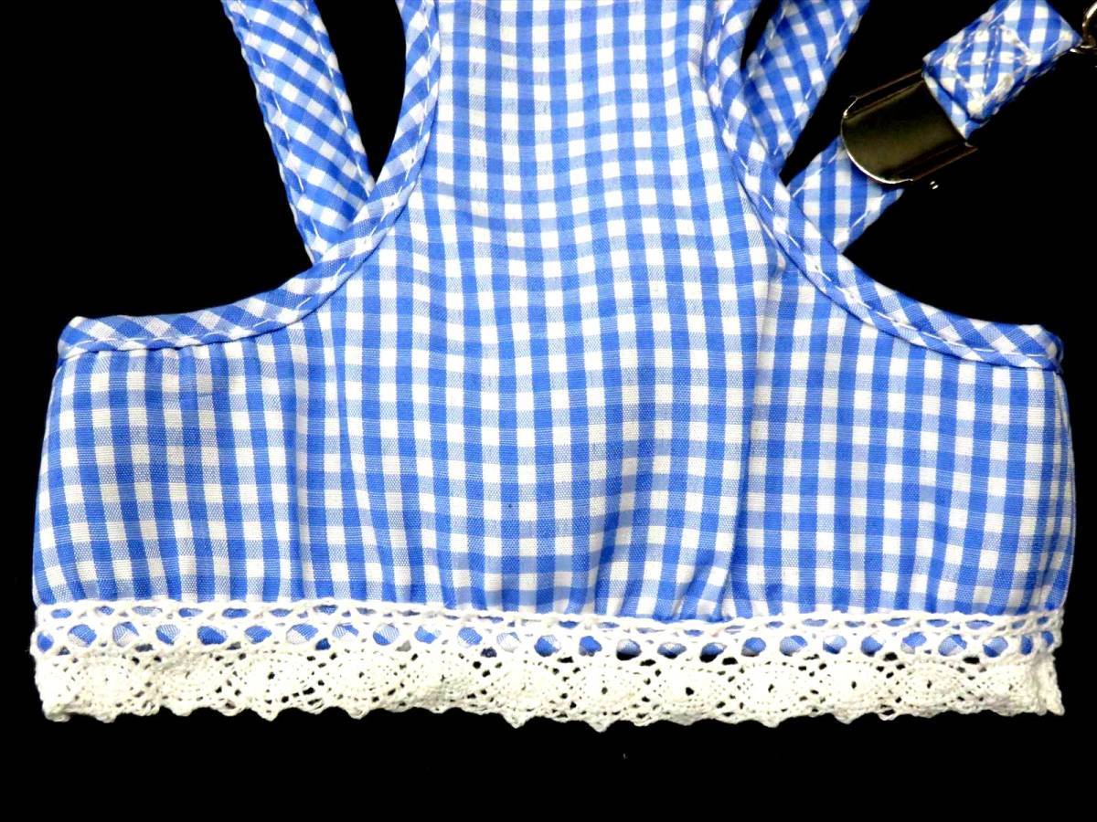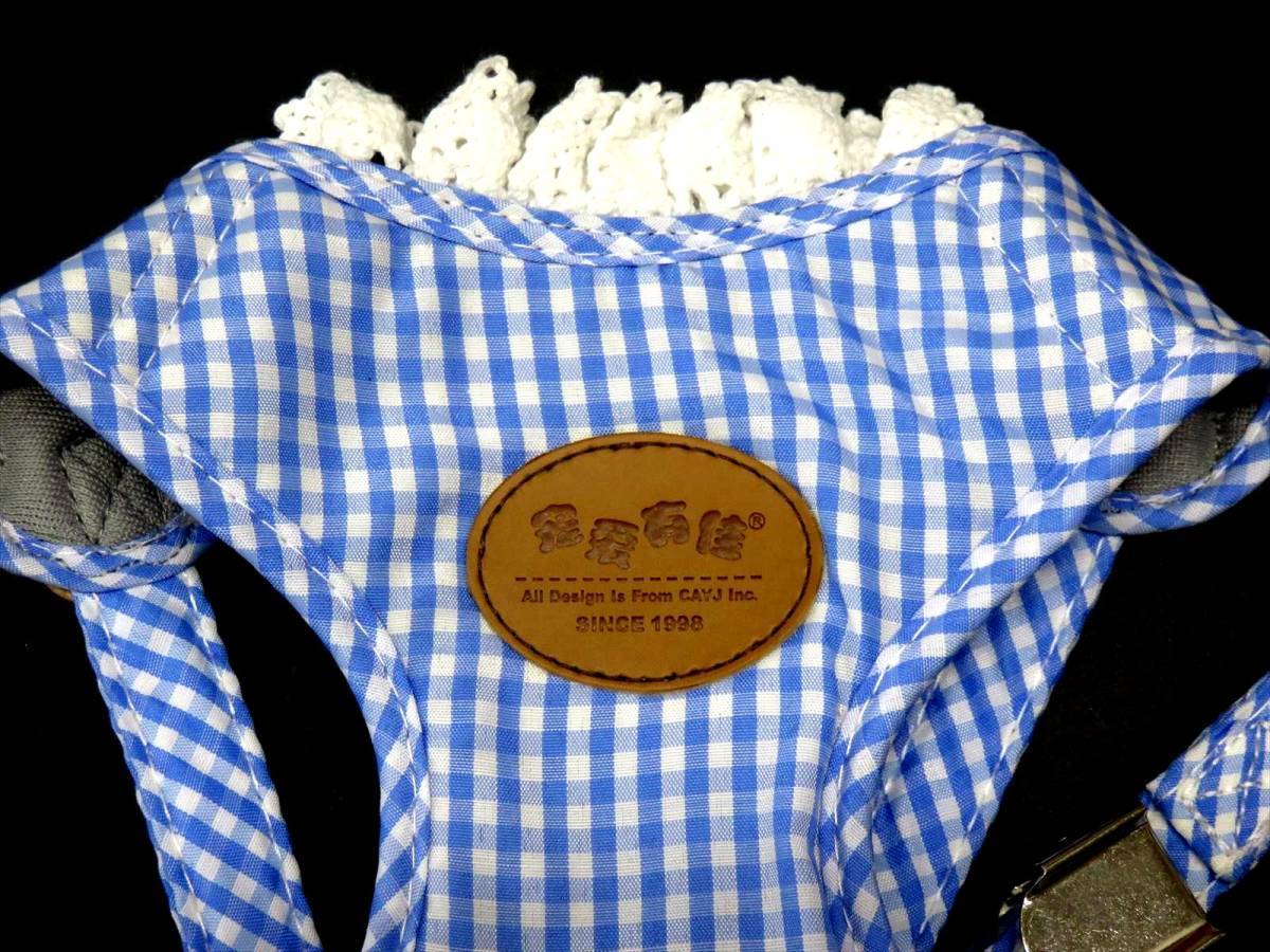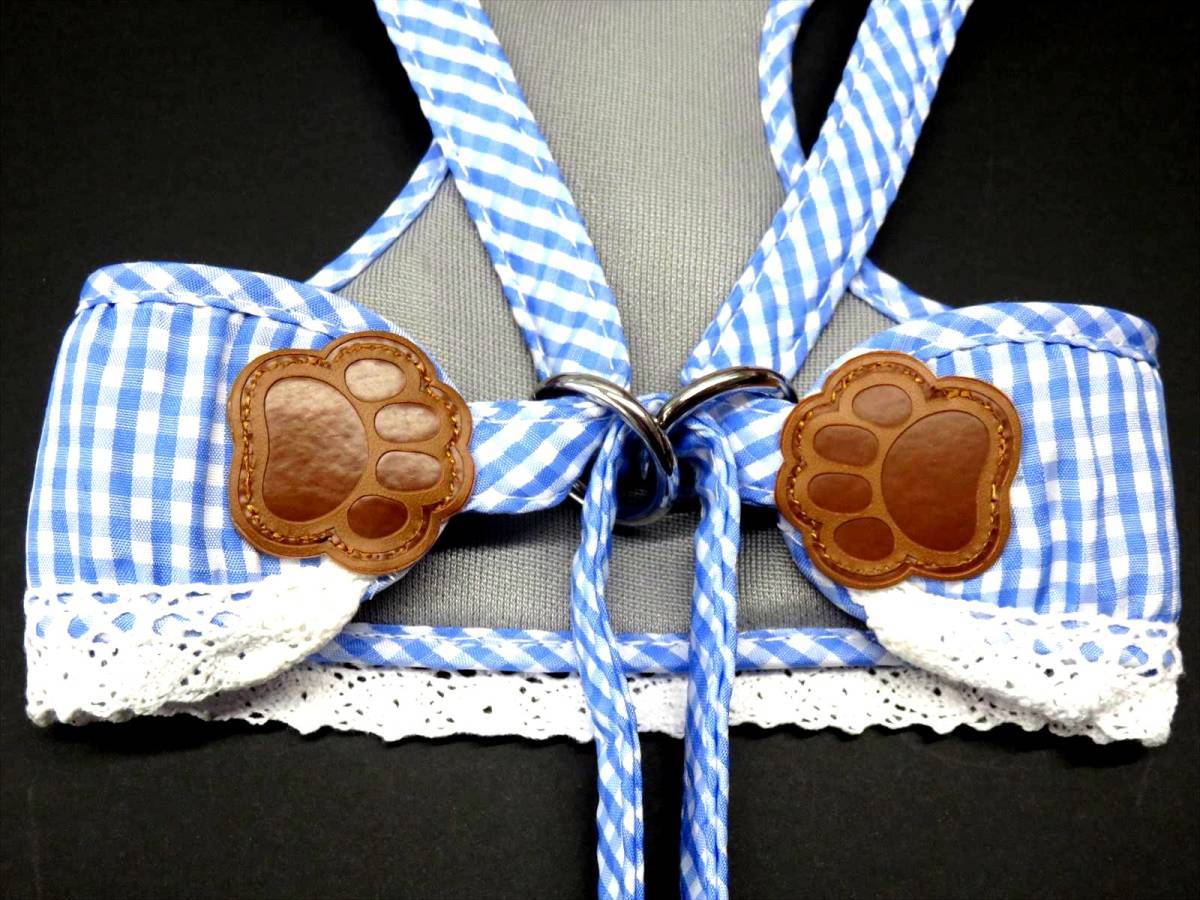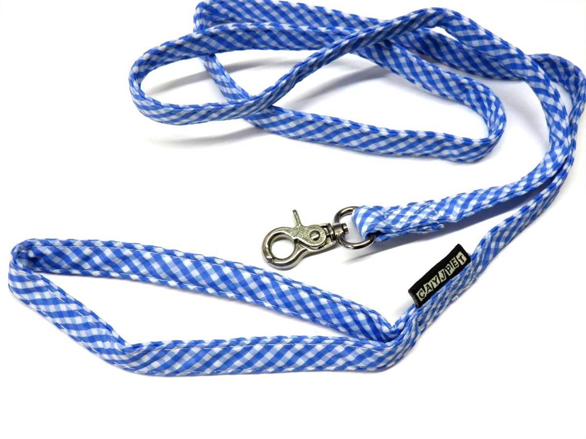 > ハーネス リードセット M 青 胴輪 胴回り35~45cm リード 110cm 小型犬 ブルー チェック柄 ギンガムチェック ペット メッシュ 犬用 散歩