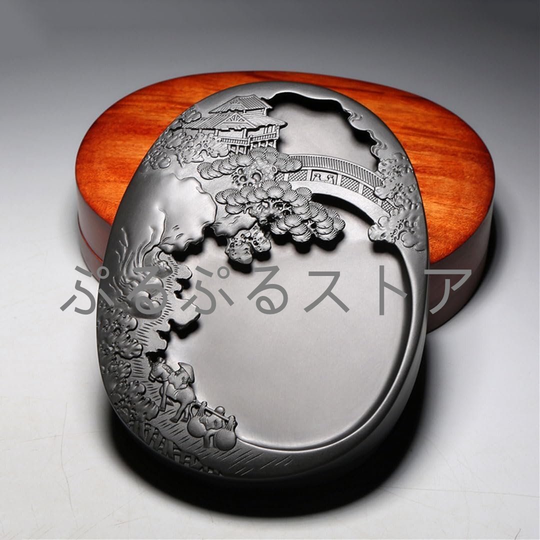 - 彫花硯 天然石 歙州硯 老坑 硯石 楕円形 書道用品 すずり 手のひらサイズ【専用化粧箱入り】サイズ 約17cm×13cm×3cm
