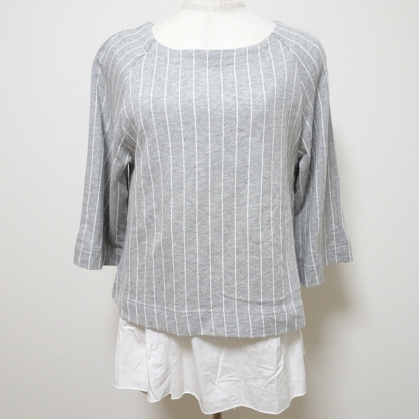 - #anc アズノウアズドゥバズ AS KNOW AS de base カットソー グレー系 ストライプ 重ね着風 バックコンシャス レディース [723232]
