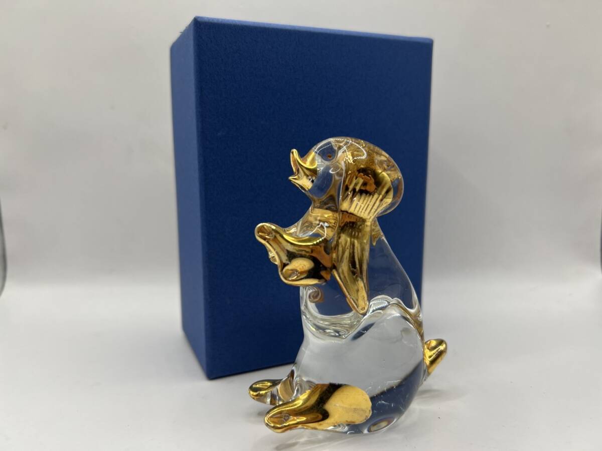 - B) イタリア製 ガラス 置物 犬 インテリア 金彩 透明 動物 ミニチュアダックスフンド D61i