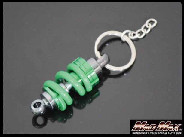 - MADMAX サスペンション型 グリーン キーホルダー/ブラックストラップ付/キーリング オシャレ リアサス【メール便送料210円】