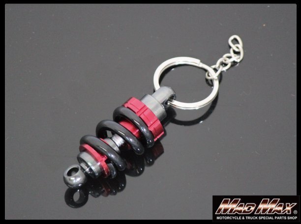 > MADMAX サスペンション型 レッド/ブラック キーホルダー/ブラックストラップ付/キーリング オシャレ リアサス【メール便送料210円】