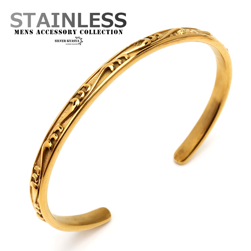 - メンズ メンズバングル ステンレス 唐草 アラベスク 細身 細め IP ゴールド 18K K18 ブレスレット 金属アレルギー対応